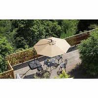 ●親骨:約126cm●UVカット率:約99%、遮光率:約96%●クランク機能付き●付属品:ウェイト4個・じょうご:1個・アンカーボルトセット8個●付属のウェイトで設置する際はバラス(市販品)をウェイト1個あたり15kg以上入れてご使用ください。